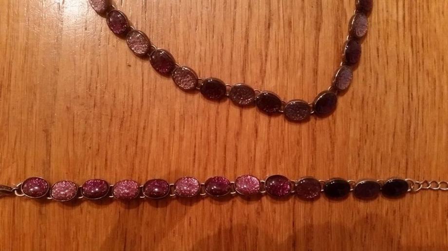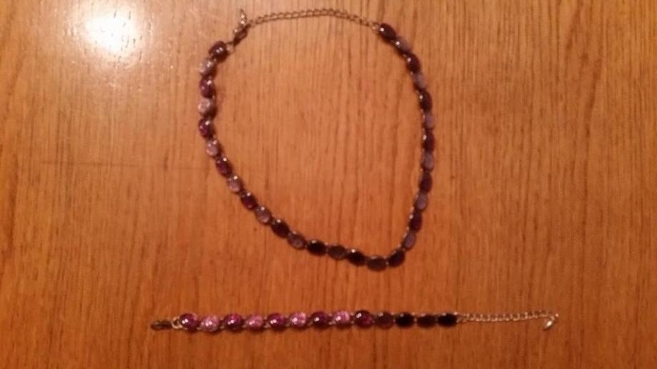 Ljubičasta ogrlica i narukvica, komplet, jako lijepo stoje, bizuterija. Noseno mozda jednom.