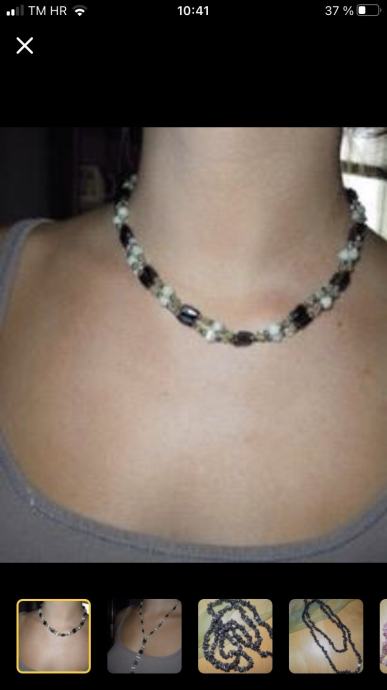 Prodajem lijepu magnetnu ogrlicu koja kombinira crne magnetne perle s prozirnim perlicama. Ogrlica ima poseban magnetni zatvarač što omogućava jednostavno stavljanje i skidanje.Perle su nanizane na čvrstoj niti, a magnetni elementi daju ogrlici i praktičnu i dekorativnu vrijednost. Univerzalna duljina prikladna za svakodnevno nošenje.