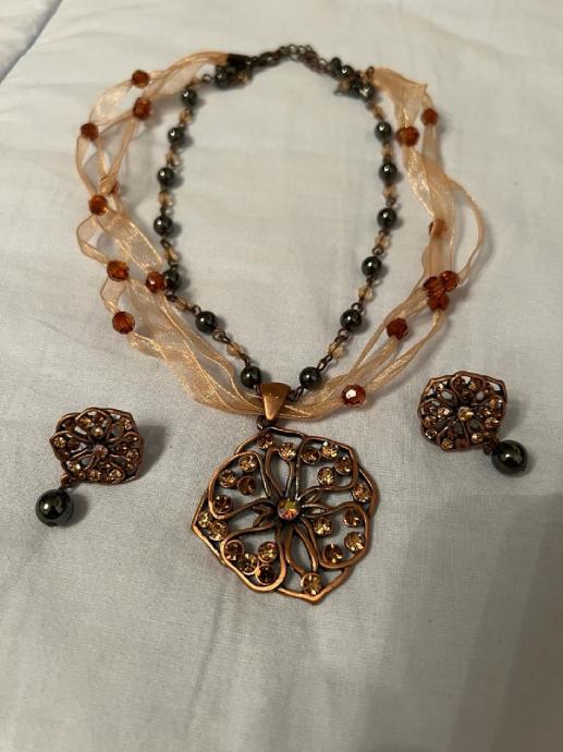 Elegantna, nova i nekoristena magnetna ogrlica jacine 800 Gausa s par nausnica za probusene uši jacine 800 Gausa. Poboljsava cirkulaciju i pomaze kod smanjenja boli.