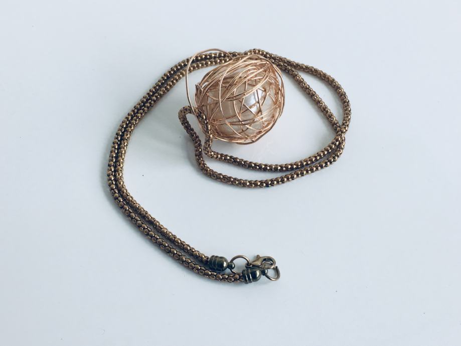 Nudim novu zanimljivu unikatnu ogrlicu od velikog bijelog bisera i zlaćane žice. Elegantno, moderno, edgy.