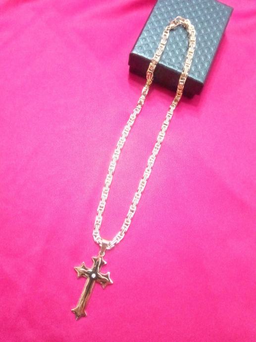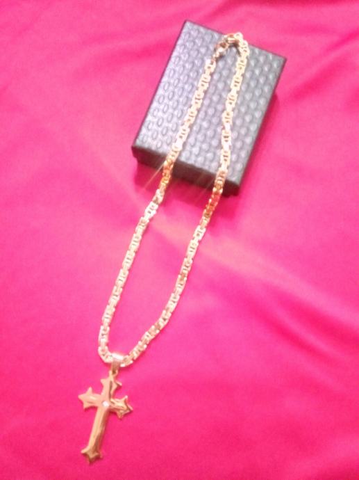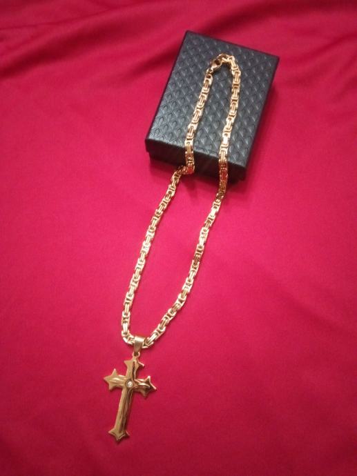 kirurški čelik Muški lančić sa križem kirurški čelik zlatne boje debljine 4 mm