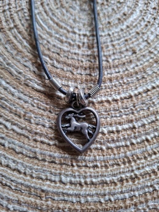 Metalni privjesak na kožici. Kožica moze biti narančasta, zelena ili crna, sve po izboru kupca.
