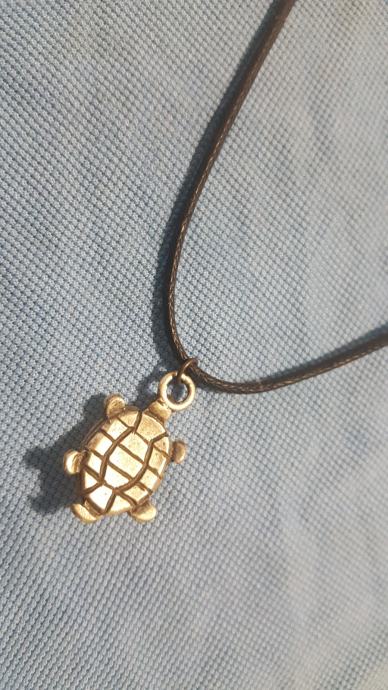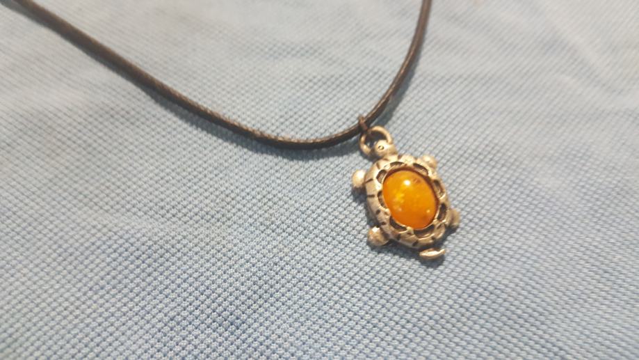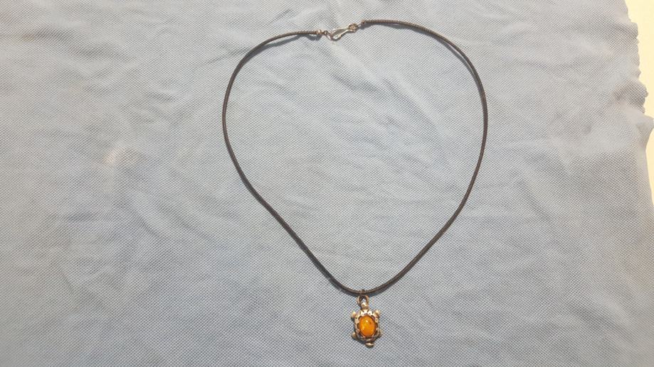 Metalni privjesak na kožici. Kožica moze biti narančasta, zelena ili crna, sve po izboru kupca.