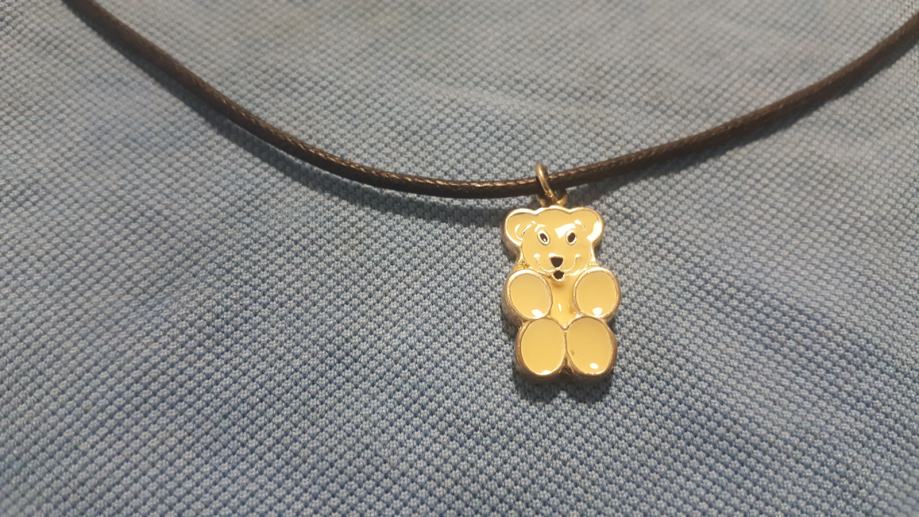 Metalni emajlirani privjesak na kožici. Kožica moze biti narančasta, zelena ili crna, sve po izboru kupca.