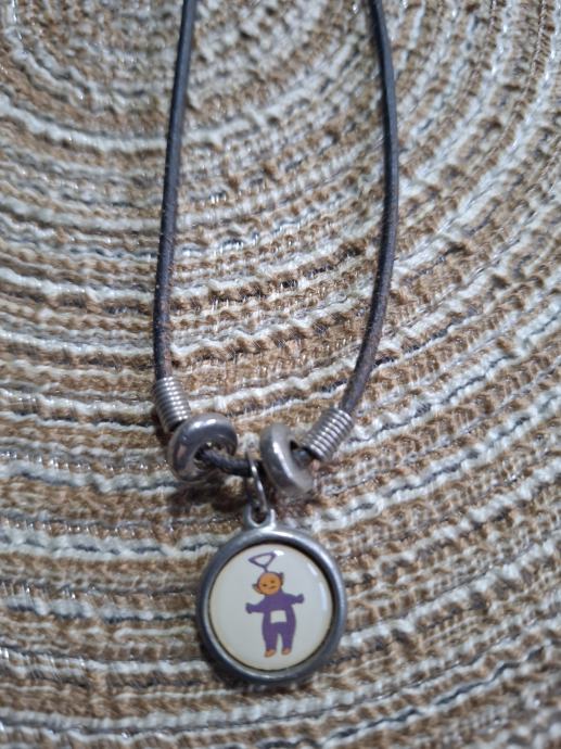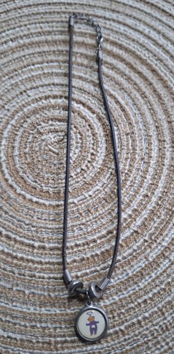 Metalni privjesak na kožici. Kožica moze biti narančasta, zelena ili crna, sve po izboru kupca.