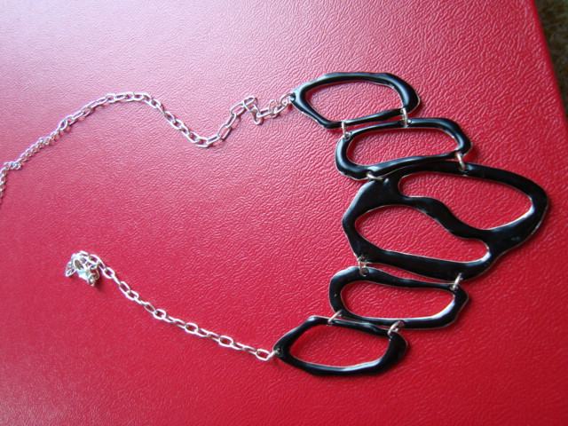Ogrlica s podesivim lančićem sa zanimljivim dizajnom, nepravilnim crnim krugovima..