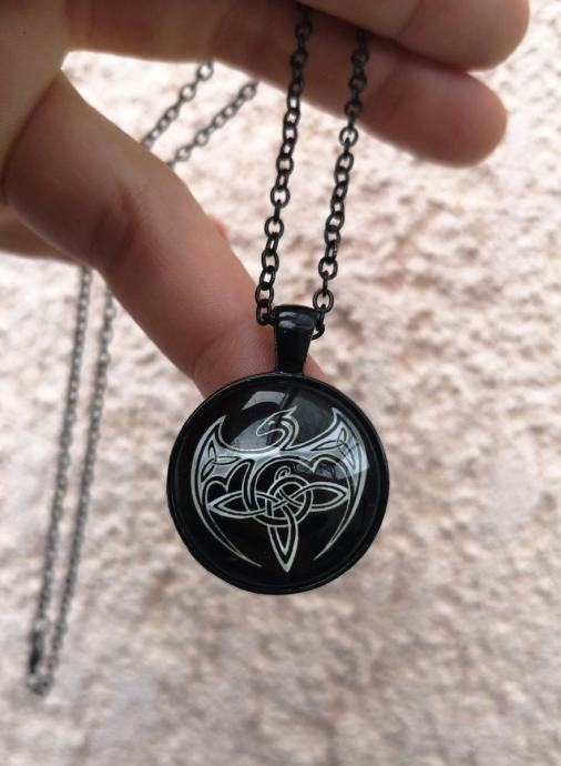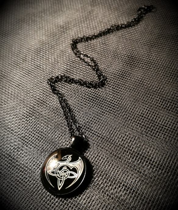Magična ogrlica koja se sastoji od privjeska s motivom stiliziranog zmaja na crnom lancu.
