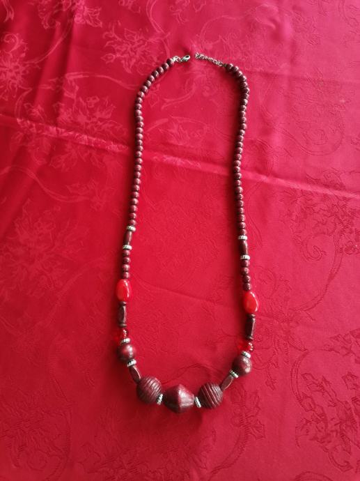 Oglica od drvenih, crvenih perli, retro stil, nikad nošena