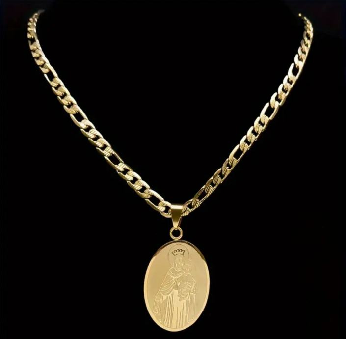 Prekrasna ogrlica Dijecica Marija material kirurški čelik sa pozlatom cijena je s dostavom.