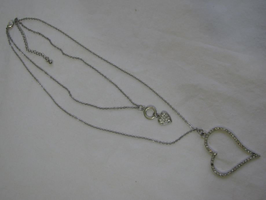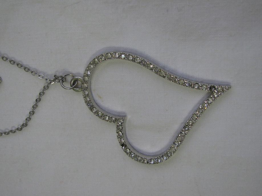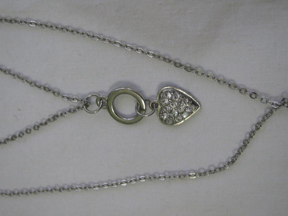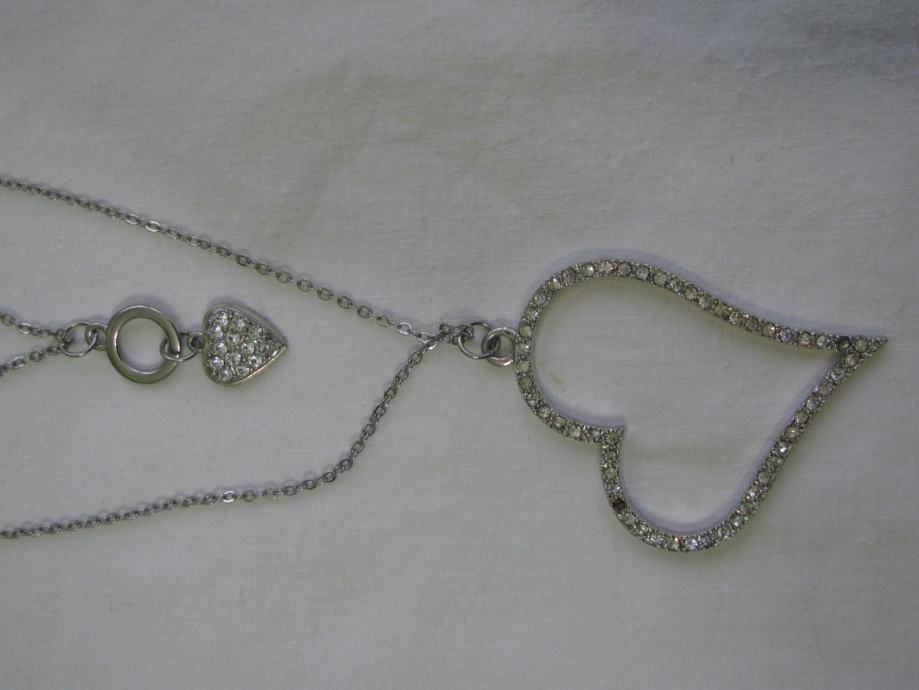 - Kraći lančić zakopčan: 20 cm, Srce: 15 x 13 mm. Pun kristalića.