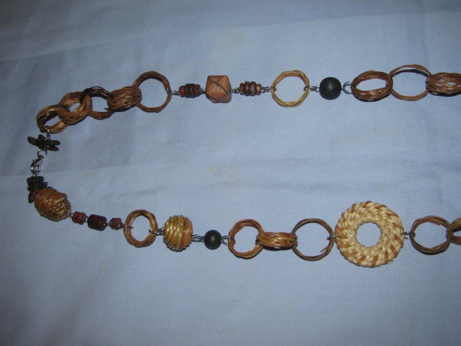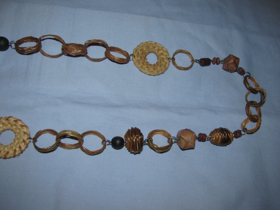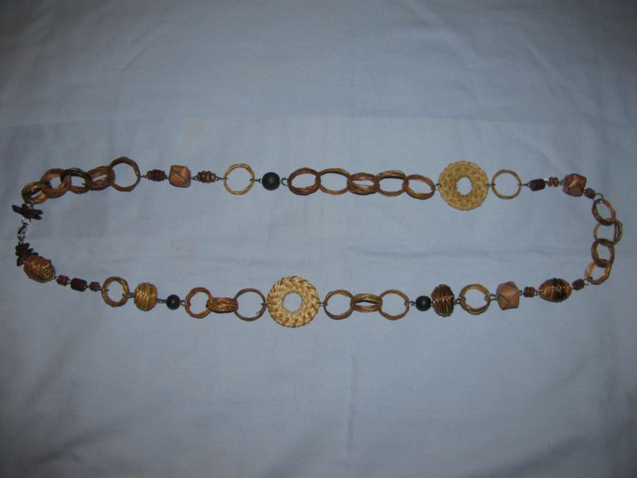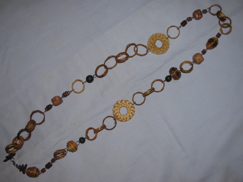 Dugačka ogrlica, pletena i rađena od raznih prirodnih materijala.