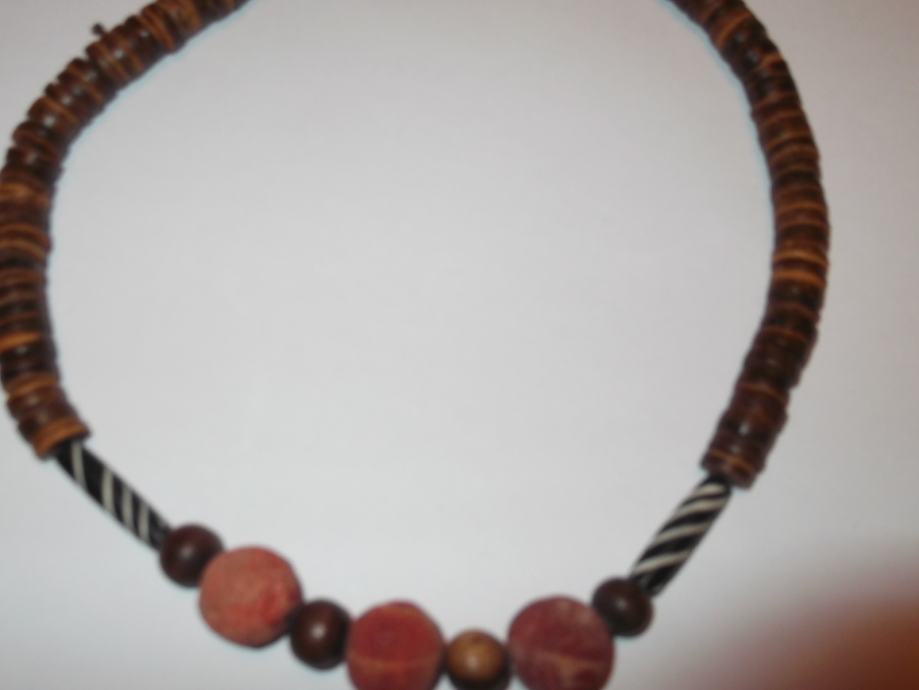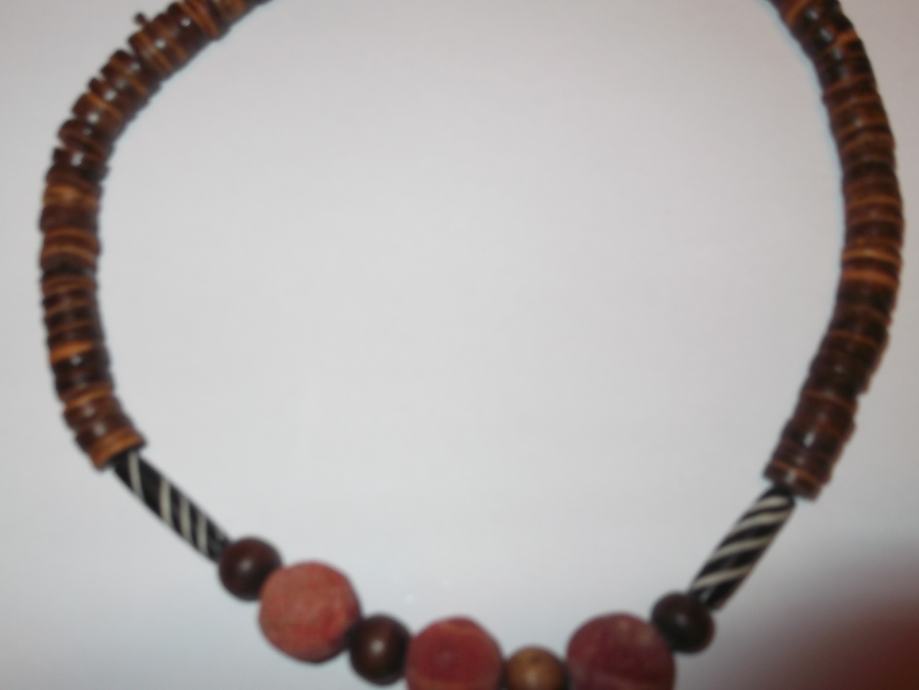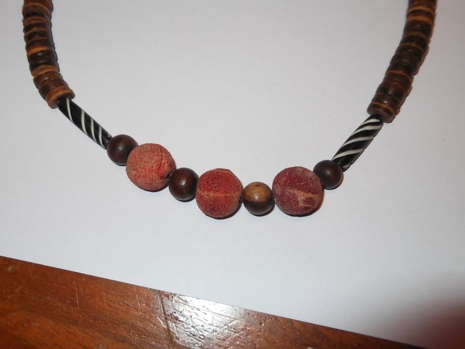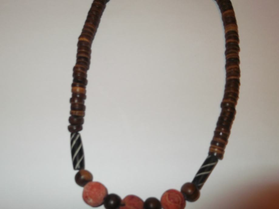 Ogrlica na gumi rastezljiva kombinacija drva i koralj