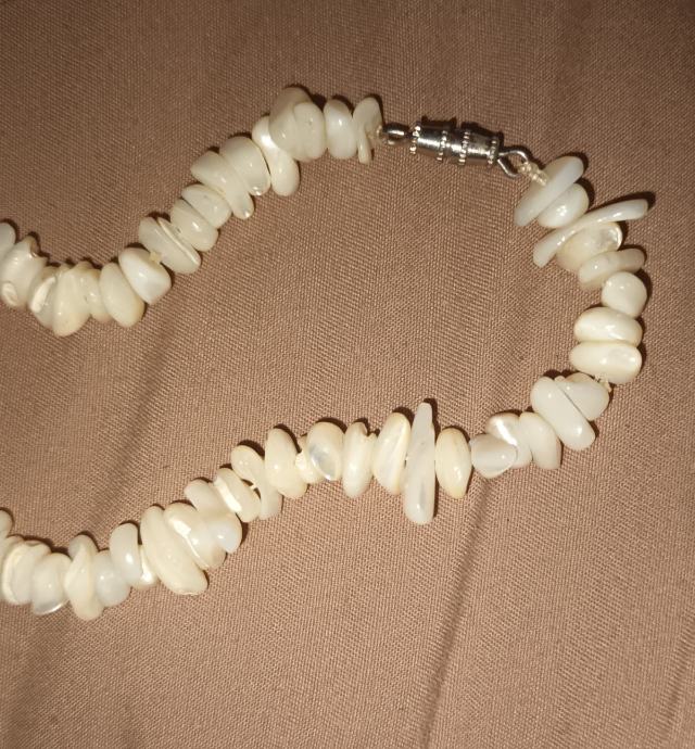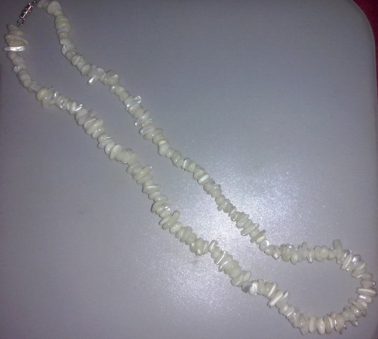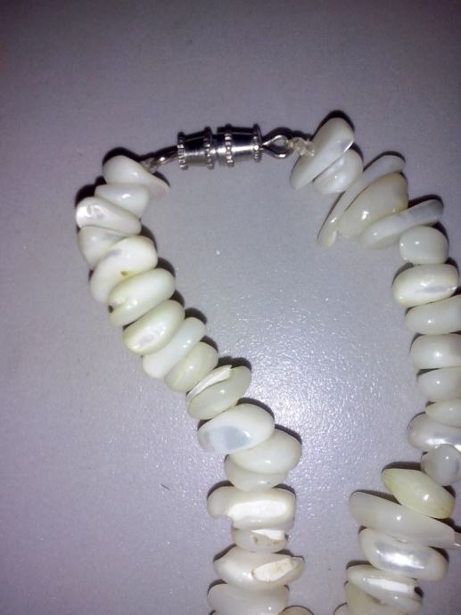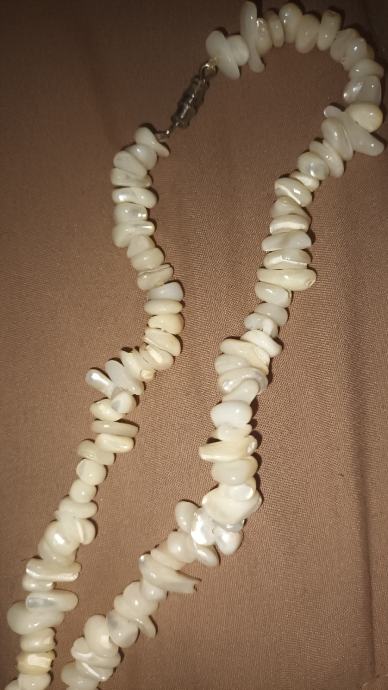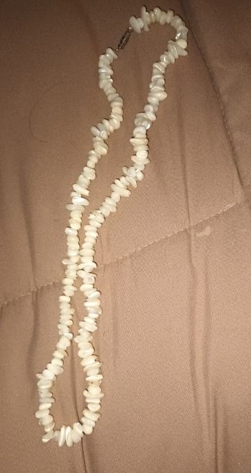 Ogrlica od kristala bijelo-žućkaste boje.Malo nošena. Zakopčana dužine 24 cm.