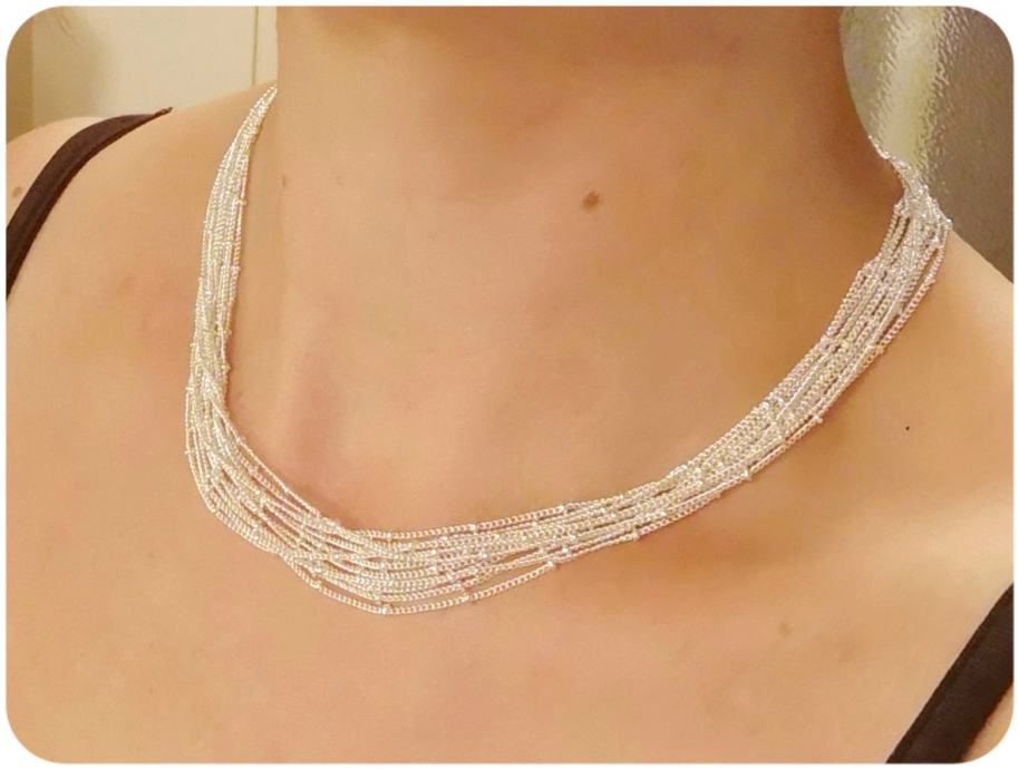 Ogrlica se sastoji od 11 tankih lančića, duž kojih su gusto raspoređene sitne kuglice.