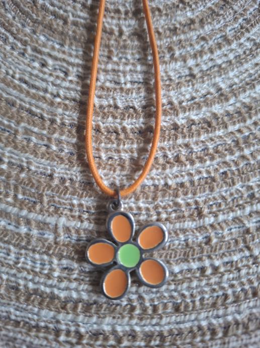 Metalni emajlirani privjesak na kožici. Kožica moze biti narančasta, zelena ili crna, sve po izboru kupca.