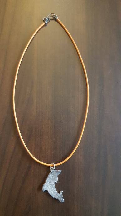 Metalni emajlirani privjesak na kožici. Kožica moze biti narančasta, zelena ili crna, sve po izboru kupca.