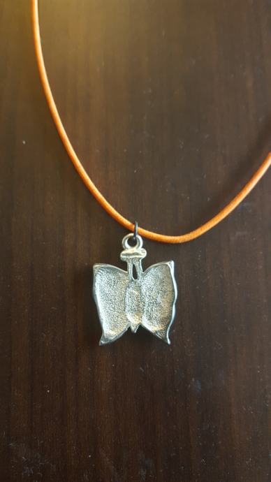 Metalni emajlirani privjesak na kožici. Kožica moze biti narančasta, zelena ili crna, sve po izboru kupca.