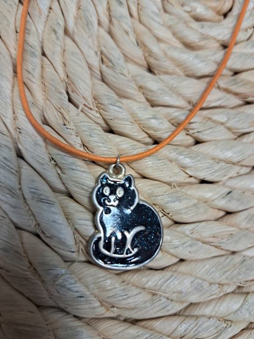 Metalni privjesak na kožici. Kožica moze biti narančasta, zelena ili crna, sve po izboru kupca.