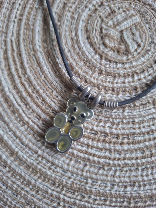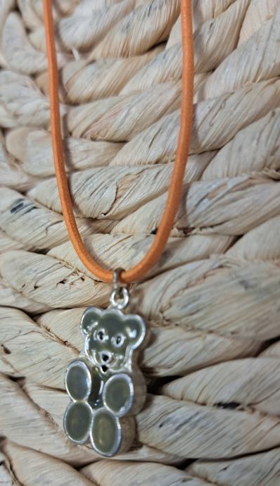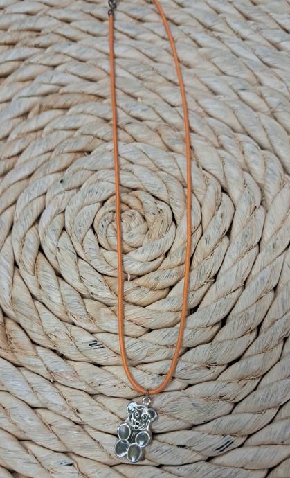 Metalni emajlirani privjesak na kožici. Kožica moze biti narančasta, zelena ili crna, sve po izboru kupca.