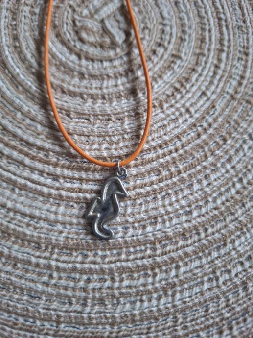 Metalni emajlirani privjesak na kožici. Kožica moze biti narančasta, zelena ili crna, sve po izboru kupca.