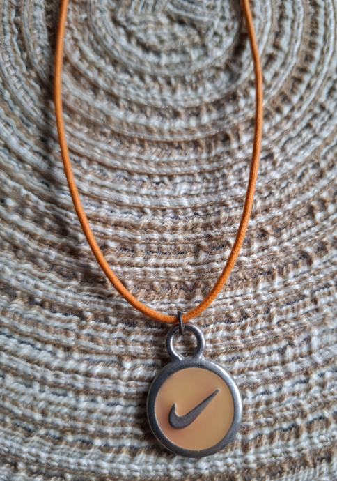 Metalni privjesak na kožici. Kožica moze biti narančasta, zelena ili crna, sve po izboru kupca.