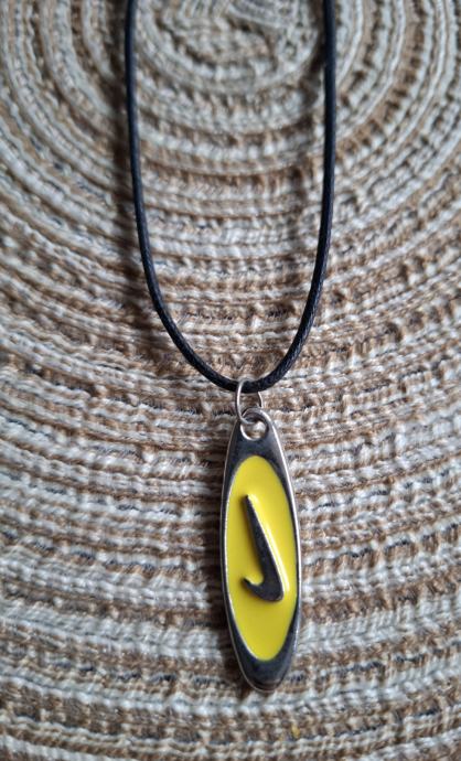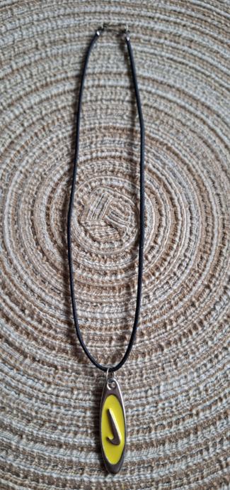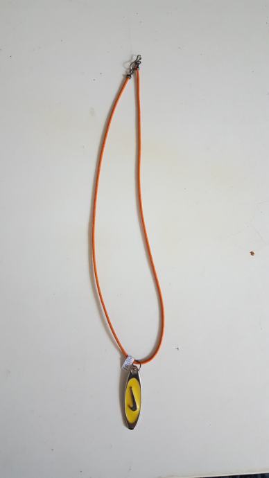 Metalni privjesak na kožici. Kožica moze biti narančasta, zelena ili crna, sve po izboru kupca.