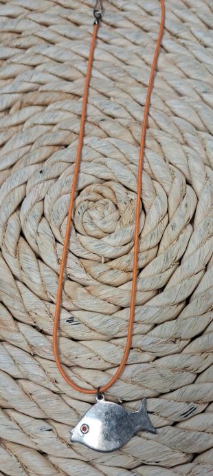 Metalni emajlirani privjesak na kožici. Kožica moze biti narančasta, zelena ili crna, sve po izboru kupca.