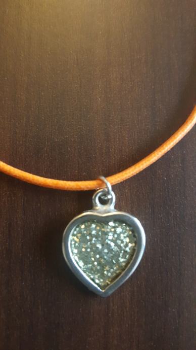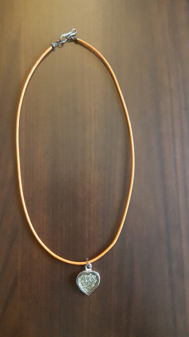 Metalni emajlirani privjesak na kožici. Kožica moze biti narančasta, zelena ili crna, sve po izboru kupca.
