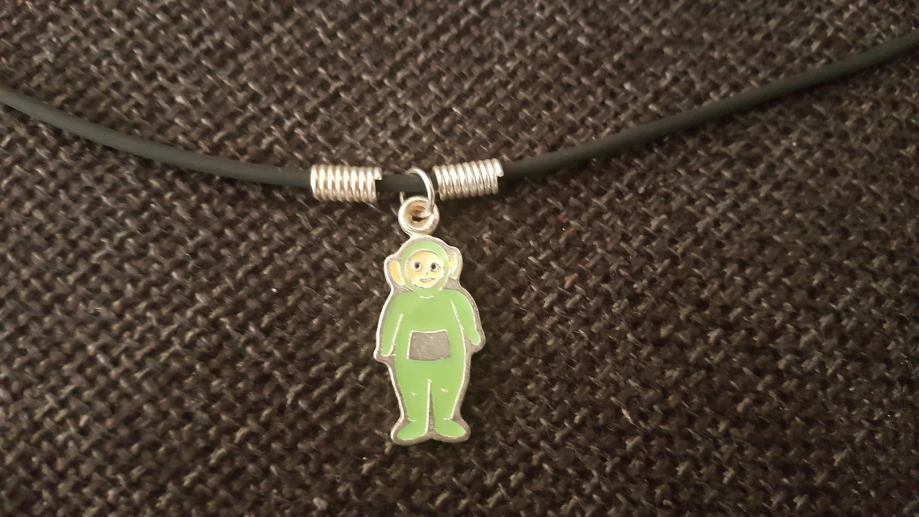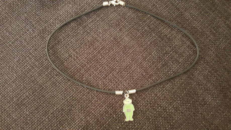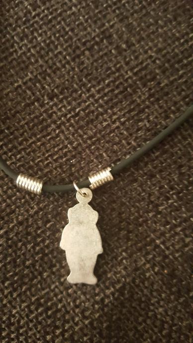 Metalni privjesak na kožici. Kožica moze biti narančasta, zelena ili crna, sve po izboru kupca.