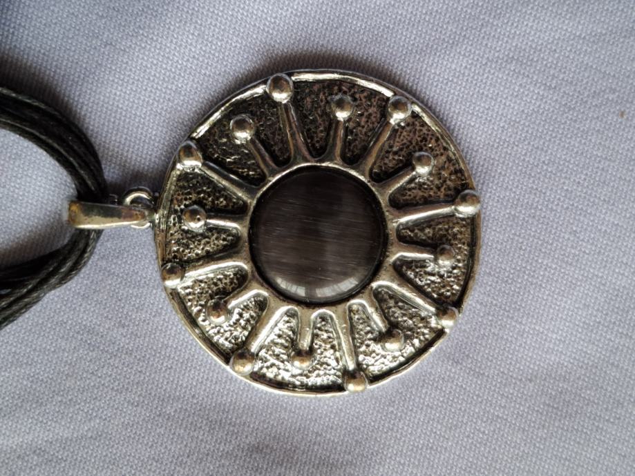 Privjesak sa ltamno ljubičastim kamenom promjera: 4,5 cm.