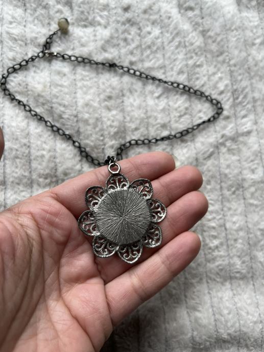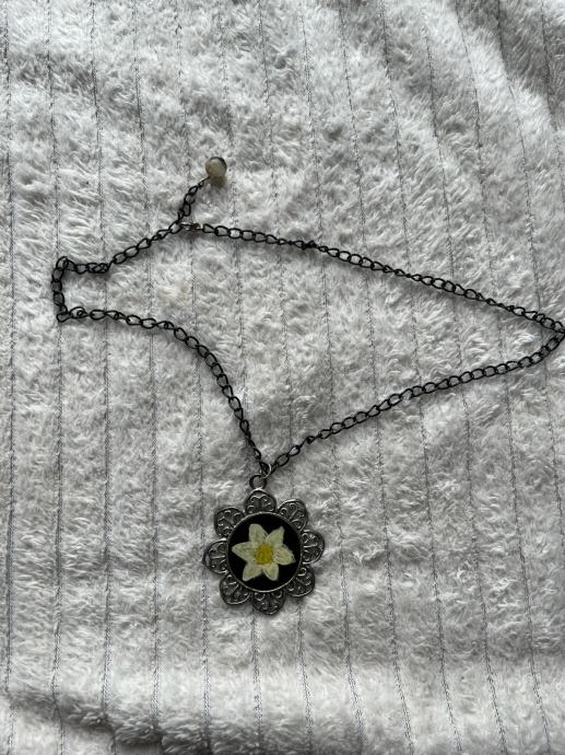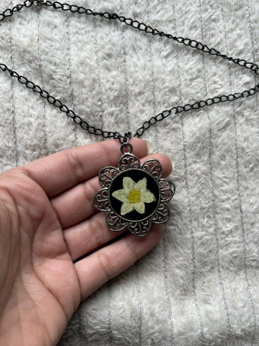 Ogrlica medaljon cvijet, ručni rad, ako se ne varam narcis.