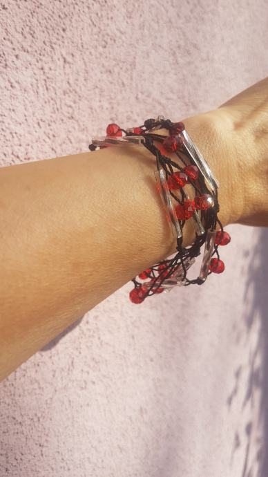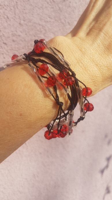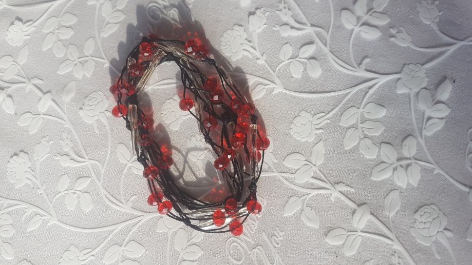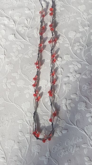 Tanka lagana ogrlica, perlice na koncu. Bez kopče, crno - crvena. Može biti i kao narukvica . Nenošena.