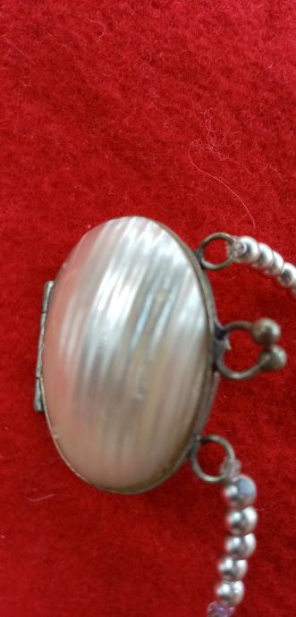 Komplet od sedefa/školjki i srebra. Kutijica 4cm,otvara se.