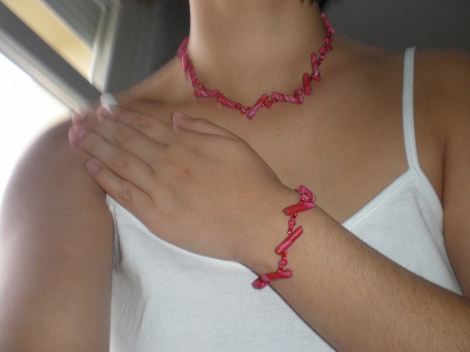 Komplet ogrlice i i narukvice od fima i rozih perlica