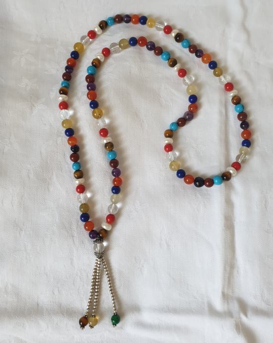 Ogrlica od puludragog kamenja (karneol, žad, biseri, lapis lazuli, gorski kristal i koralj...)