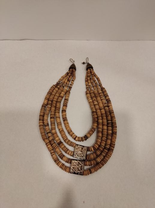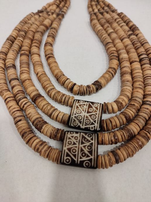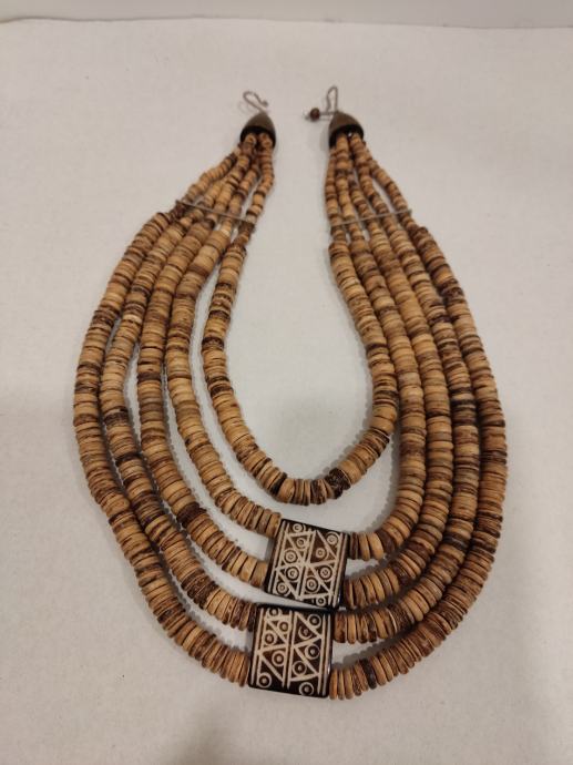 Ogrlica od kokosa I kosti, kupljena u Brazilu, na Iguasu slapovima. Nije suvenir. Stanje izvrsno, nije nošena. Duljina najkraćeg niza, zajedno s alkom 40 cm.