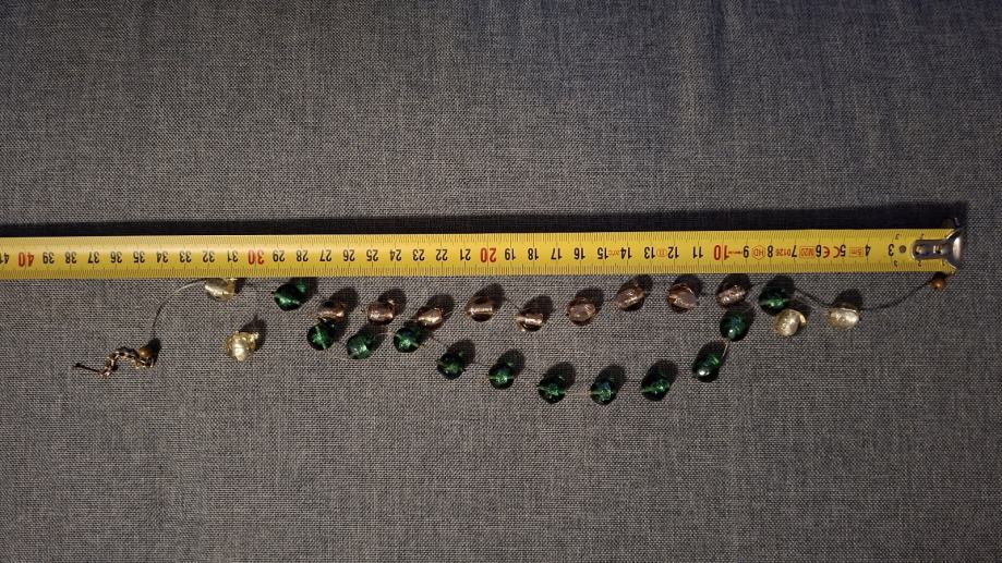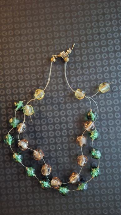 Prodajem rabljenu ogrlicu izrađenu od višebojnih perlica na tankoj nizi. Ogrlica sadrži kombinaciju zelenih i prozirnih staklenih perli koje stvaraju elegantan efekt. ogrlica je u dobrom stanju i predstavlja lijep modni dodatak za svaku prigodu.