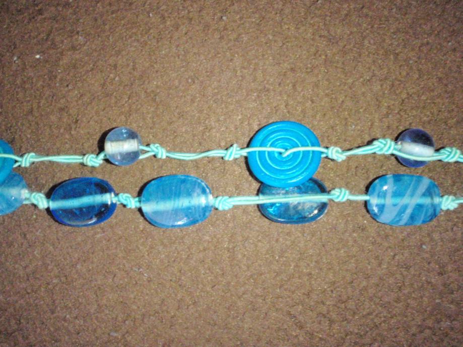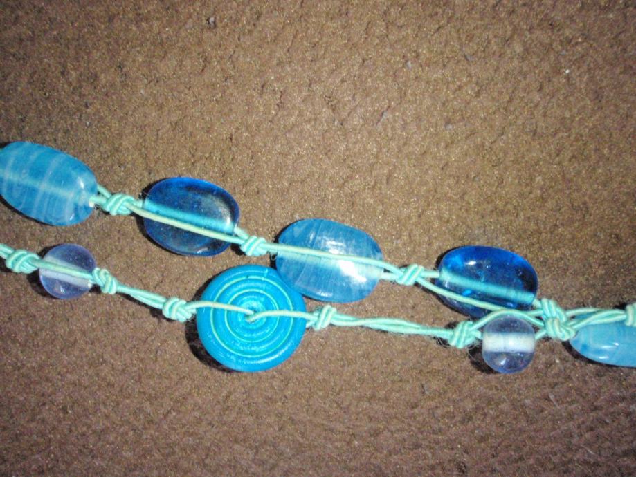 Duga ogrlica sa plavim plastičnim perlama i imitacijom stakla na koncu. U 2 niza ali se može još i omotati. Bez oštećenja. Pogledajte moje ostale oglase.