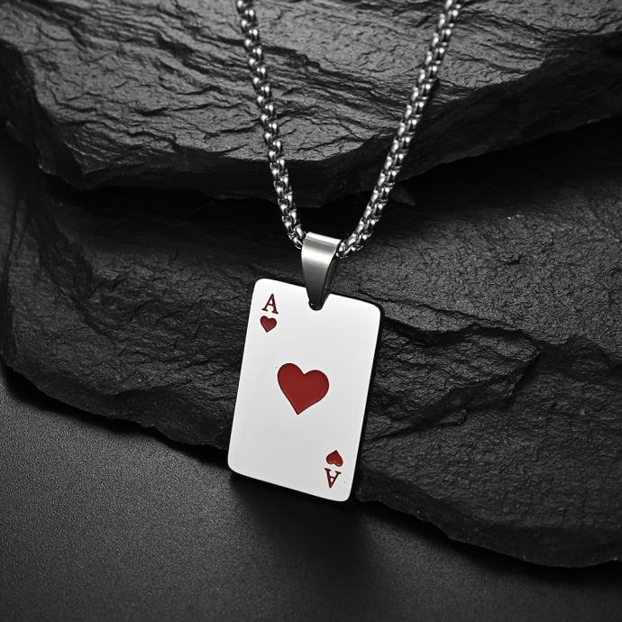 Ogrlica s privjeskom od asa pika i srca od nehrđajućeg čelika u hip-hop stilu, svestrana ogrlica s lancem za džemper za parove