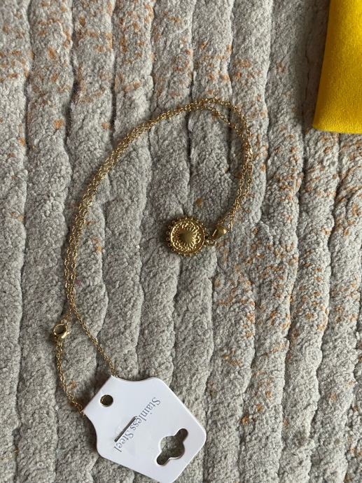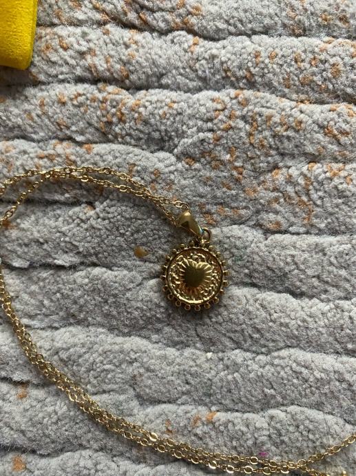 S jedne strane se nalazi R, a s druge strane srce, ogrlica je od srebra čistog te je pozlaćena sa 18 karatnim zlatom.
