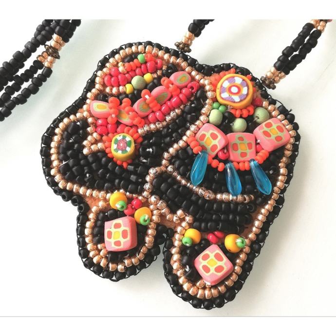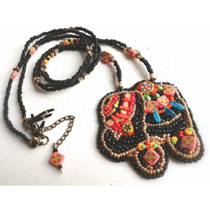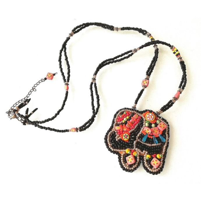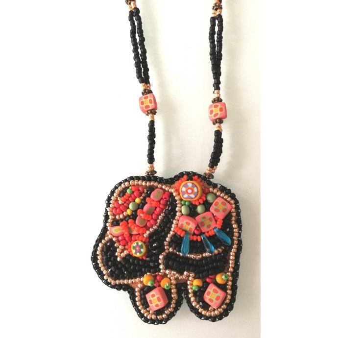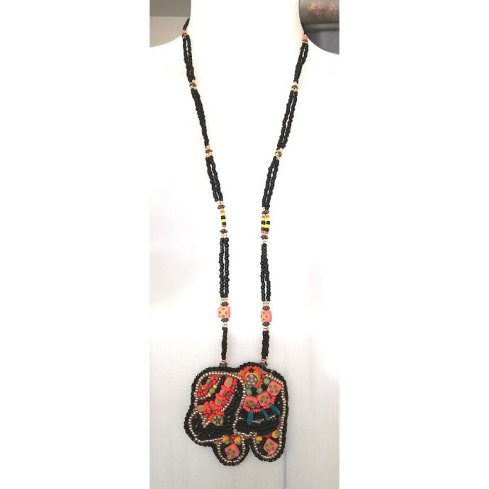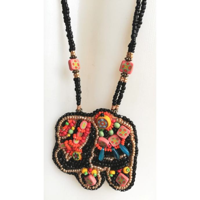 Ogrlica s motivom slonića radena embroidery tehnikom. Ručni rad. Unikatna.