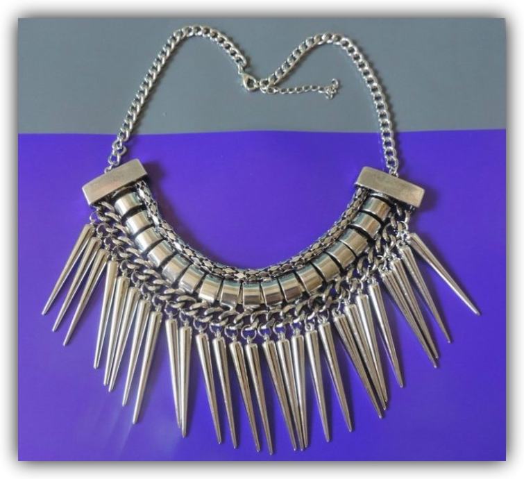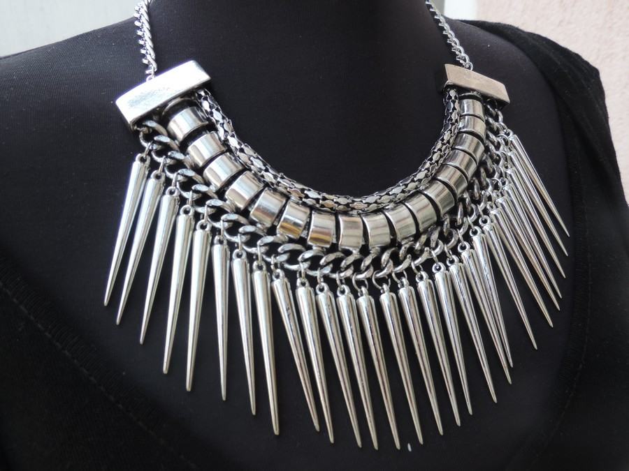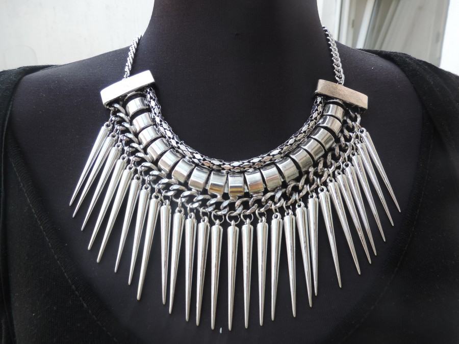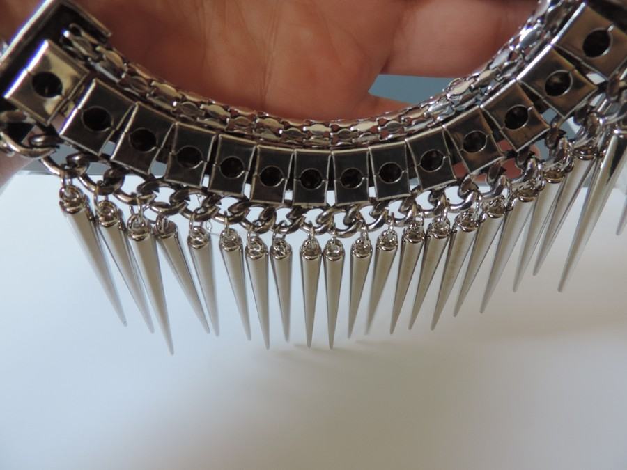 Fantastična ogrlica sa šiljcima/spajkovima, nijansa bijele bronce (zapravo srebrna boja).