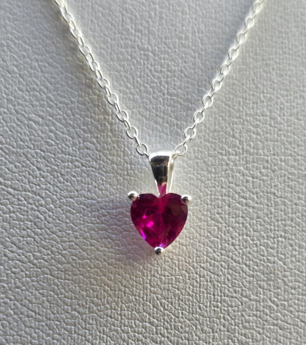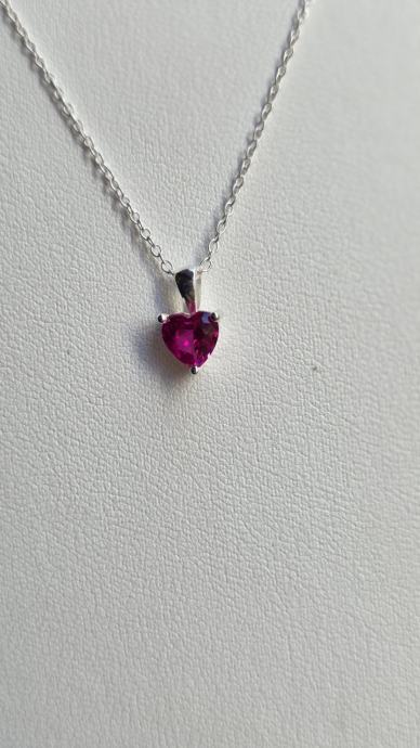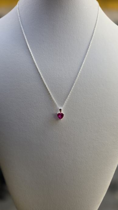 Ogrlica od srebra sa rubinom u obliku srca