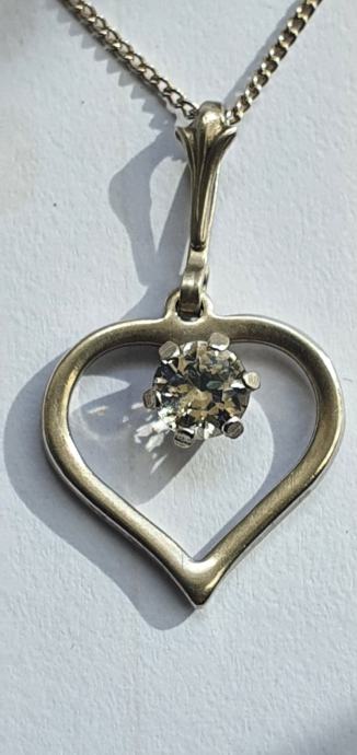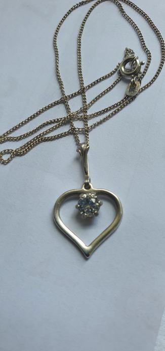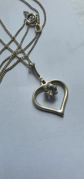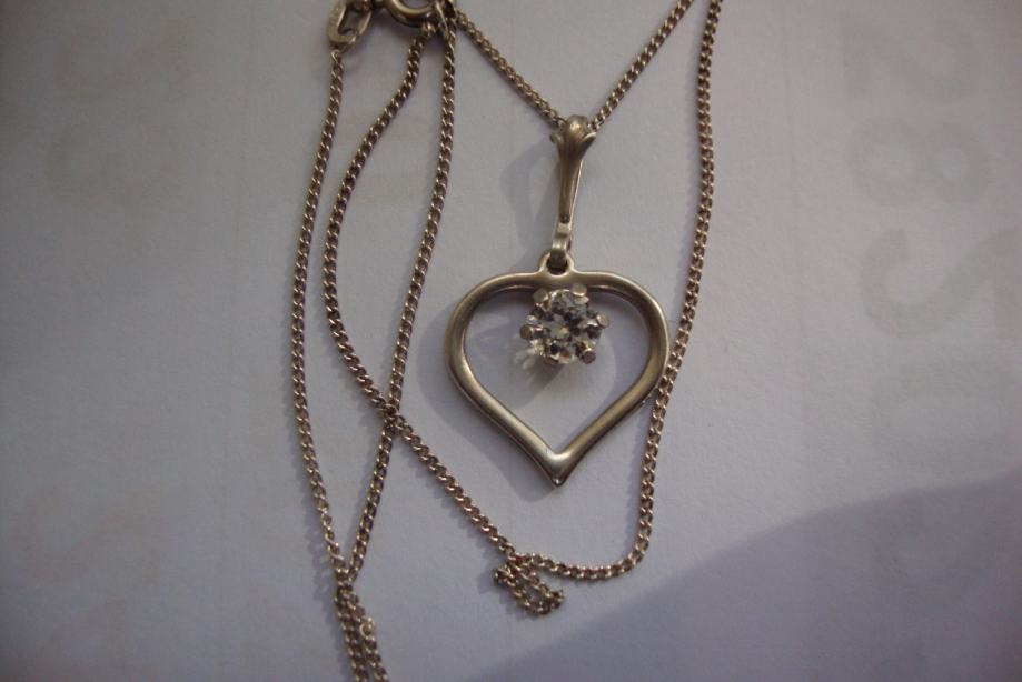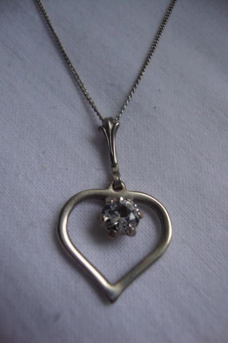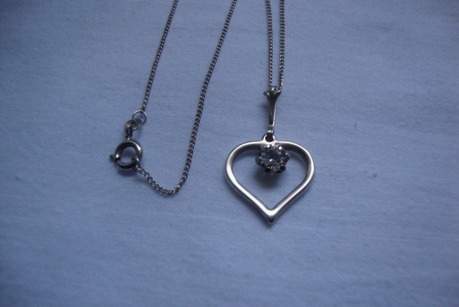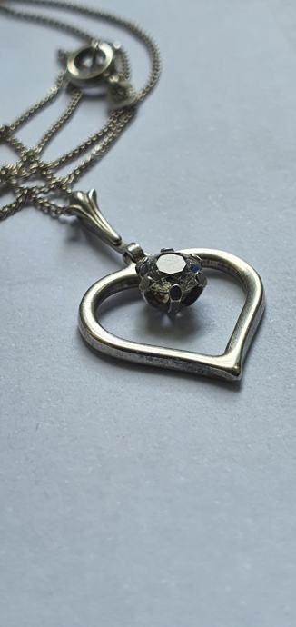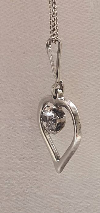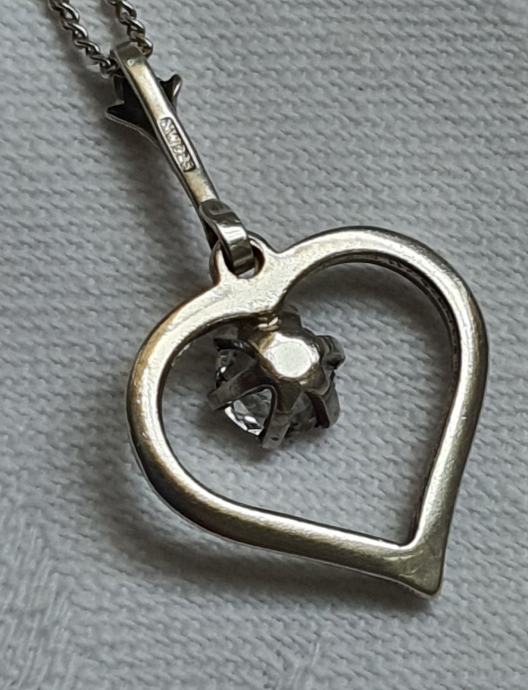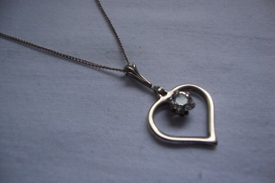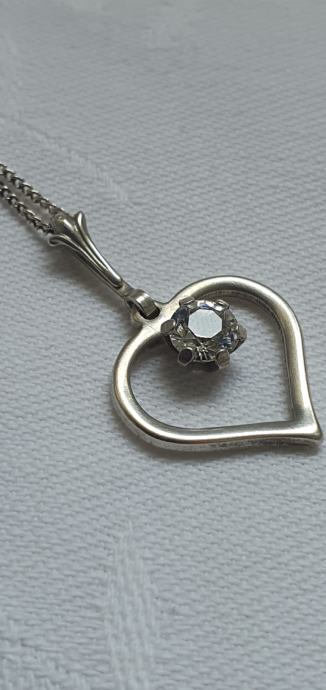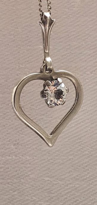 Lijepa srebrna ogrlica iz vremena art deko 30/40 tih godina izrađeno ručno od srebra 835 sa privjeskom srce ukrašeno predivno brušenim kamenom (kristal/cirkon) sa žigom zlatara i oznaka NW 925 sve je u savršenom stanju besprijekorno uredno i očišćeno