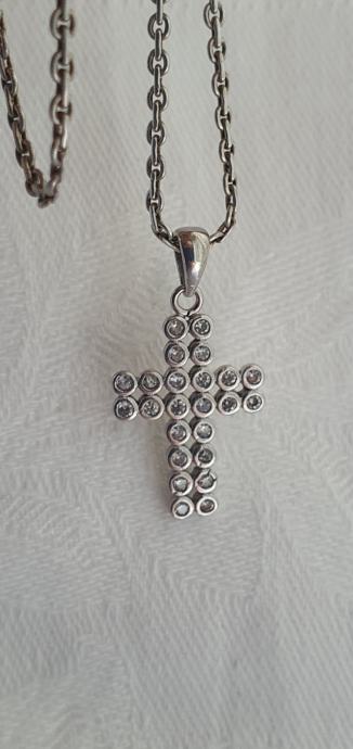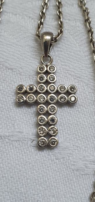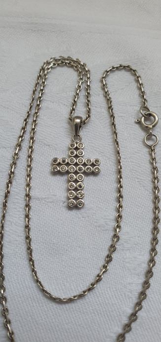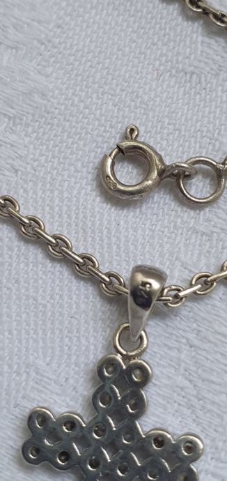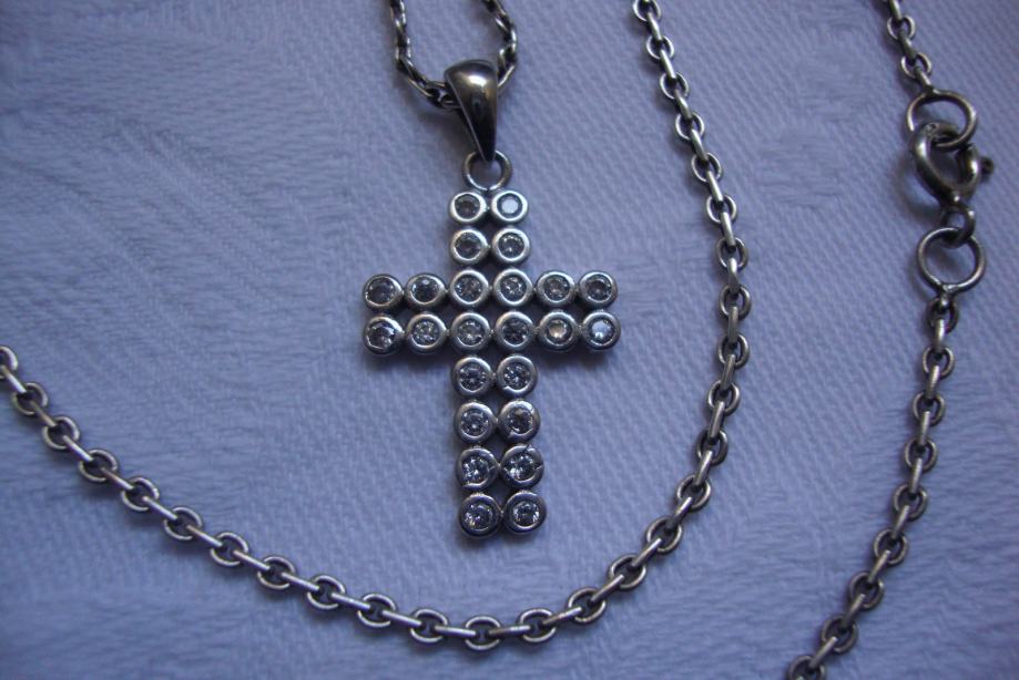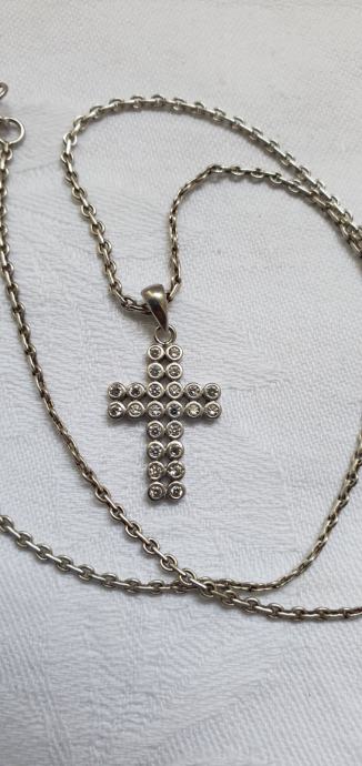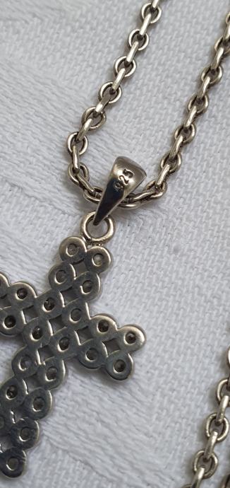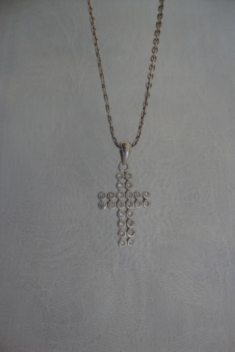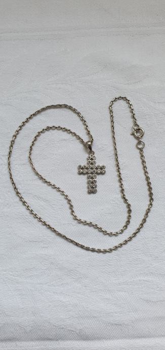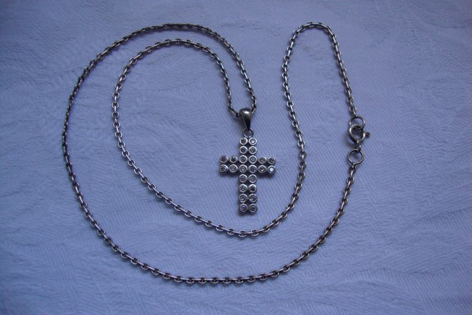 Vintage ogrlica jako lijepog pleta i pripadajući križ ukrašen kamnečićima