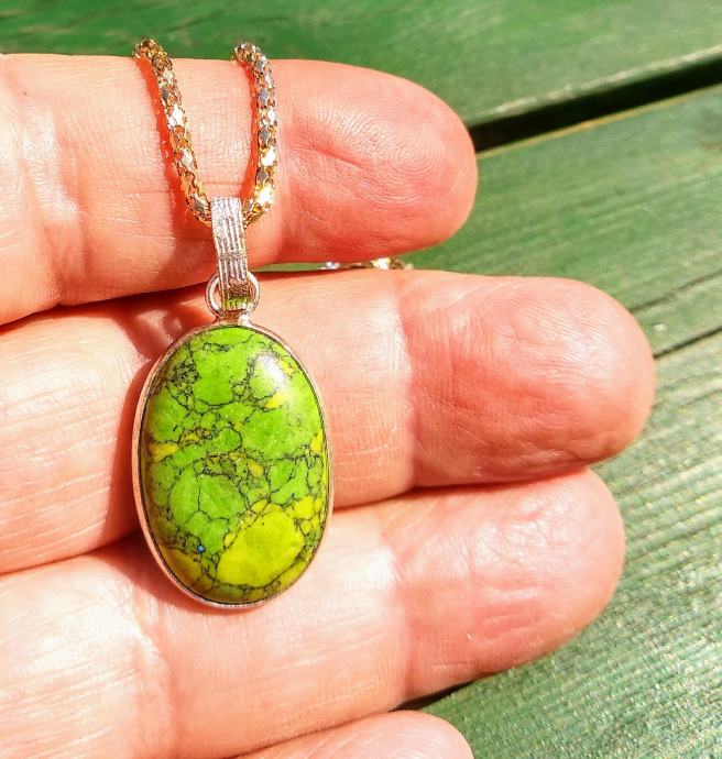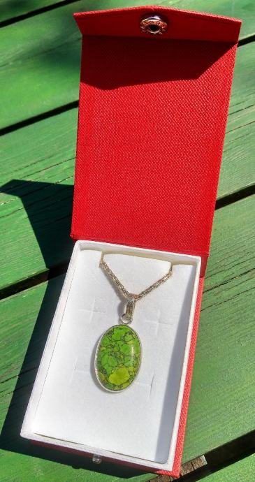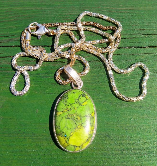Ogrlica - Tirkizni kamen u Srebrnom okviru sa posrebrenim lančićem