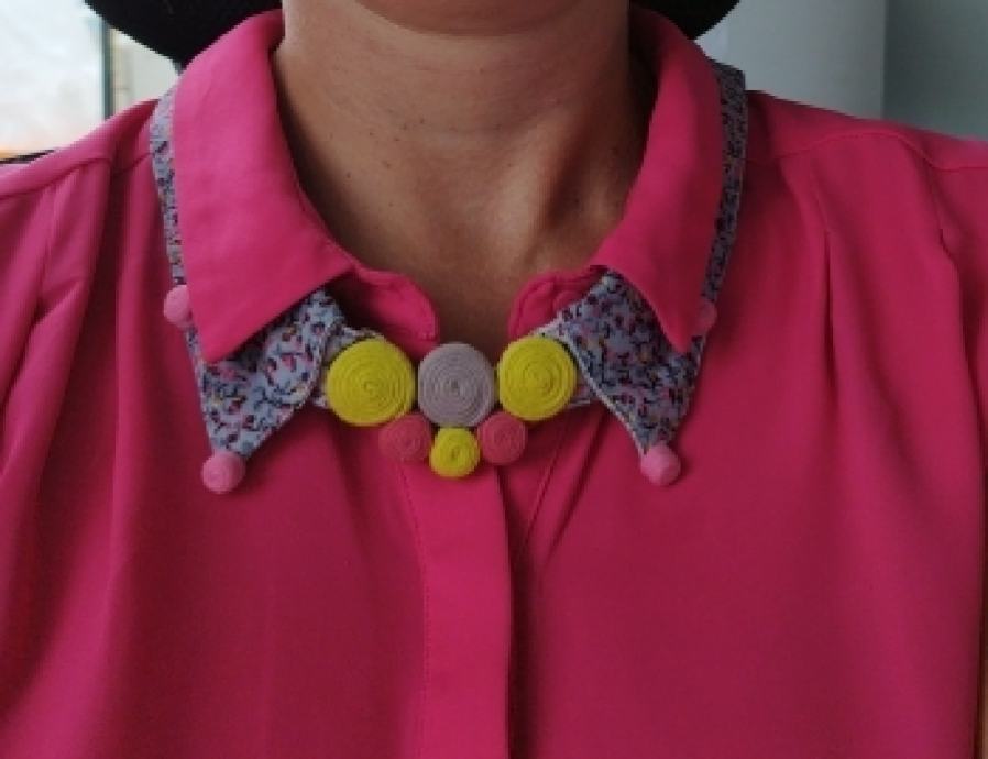 Zanimljiva ogrlica u obliku kragne. Veže se oko vrata, ručni rad. Za kupljene dvije stvari iz mojih oglasa poštarina je gratis a moguće i osobno preuzimanje u istočnom dijelu Zagreba