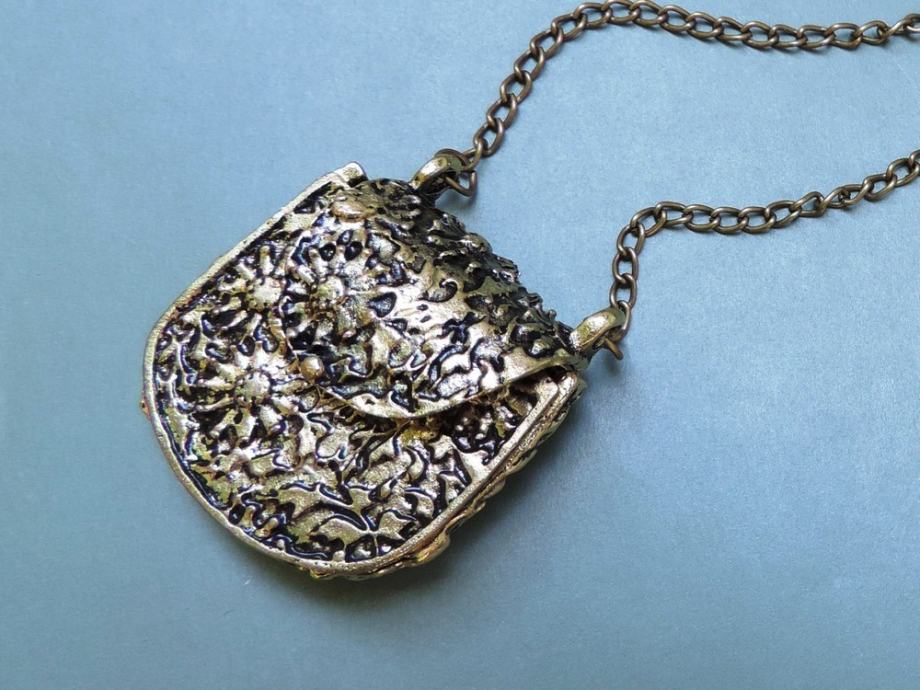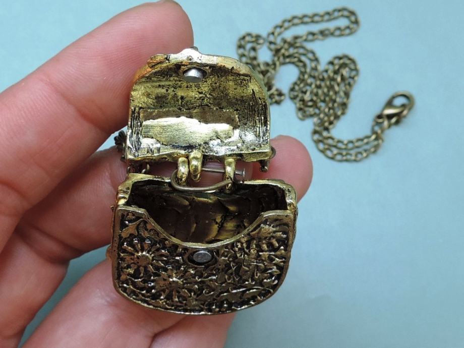 Mala torbica može se i otvarati (kopčanje na magnet) i u nju pohraniti neka minijaturna sitnica, ali privjesak je ipak prvenstveno estetske prirode :)