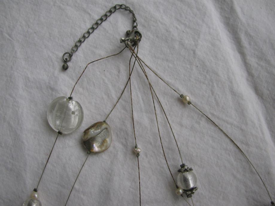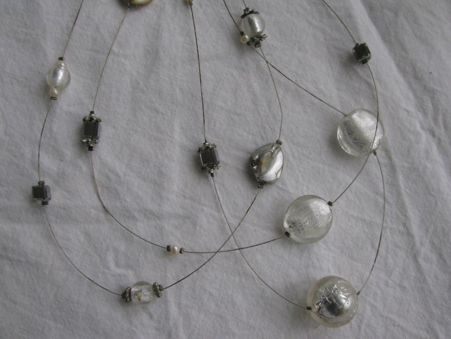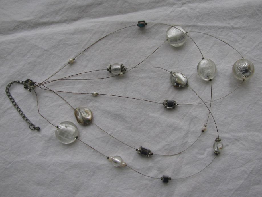Ogrlica od tri niza raznih elemenata.