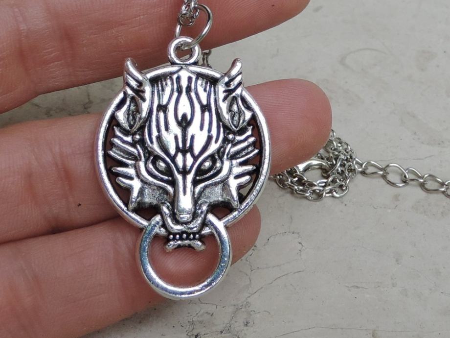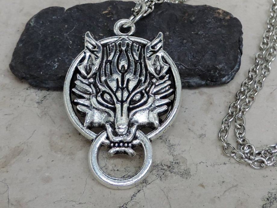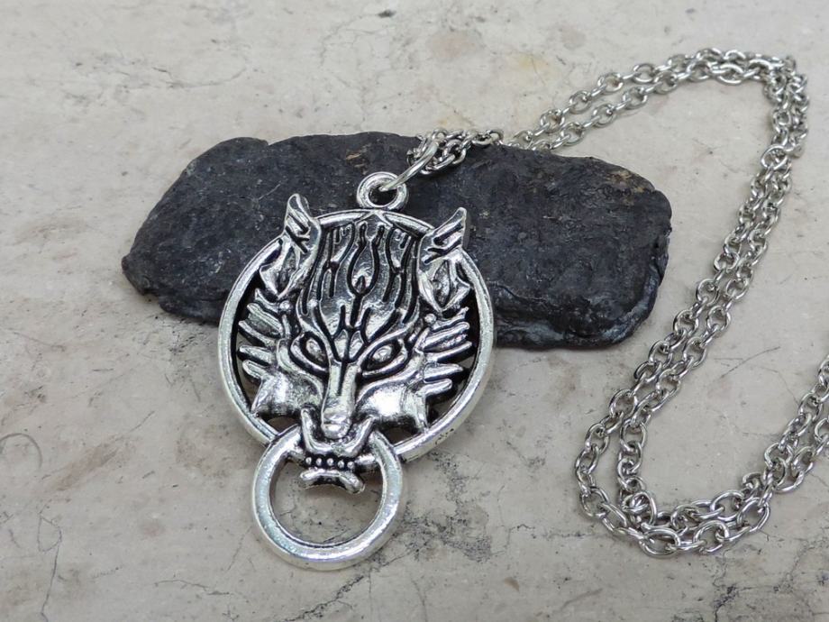 Ovu upečatljivu ogrlicu čini privjesak s vučjom glavom na srebrnom lančiću.